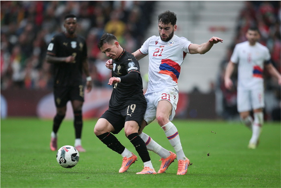 Portugal empezó dominando, pero Armenia sorprendió e igualó el partido poco después. Sin embargo, los lusos tardaron poco en tomar el control: Neves marcó dos veces antes del medio tiempo (incluyendo un golazo de tiro libre), y justo antes del descanso, Fernandes convirtió un penal para dejar el marcador 5-1 al descanso.